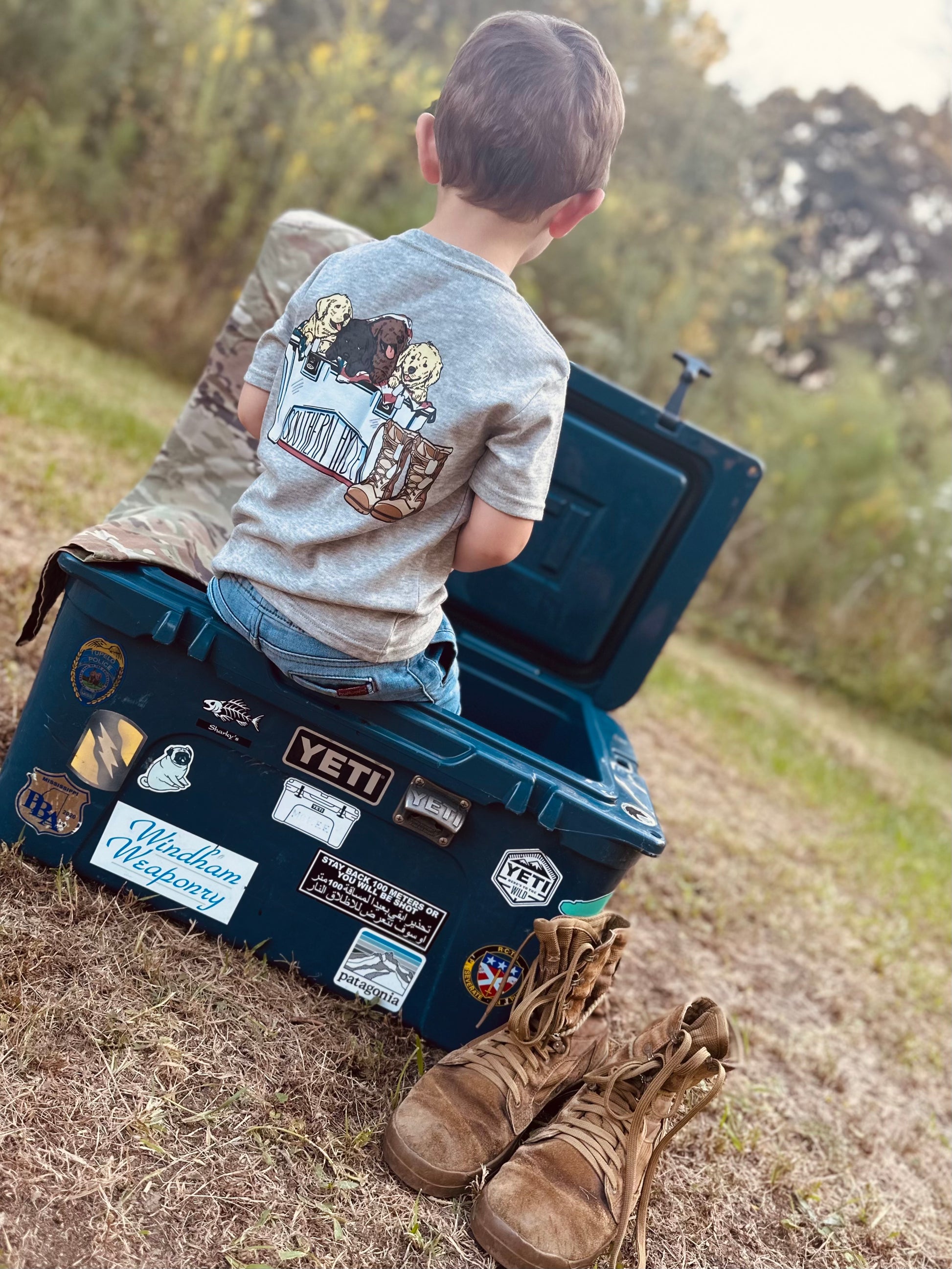 All our items are Direct to Film printed. Toddler/youth Shorts Sleeves are printed on 100% Cotton tees, brand Rabbit Skins/LAT. Adult Short Sleeve are printed on 100% Ring Spun Cotton, brand LAT.